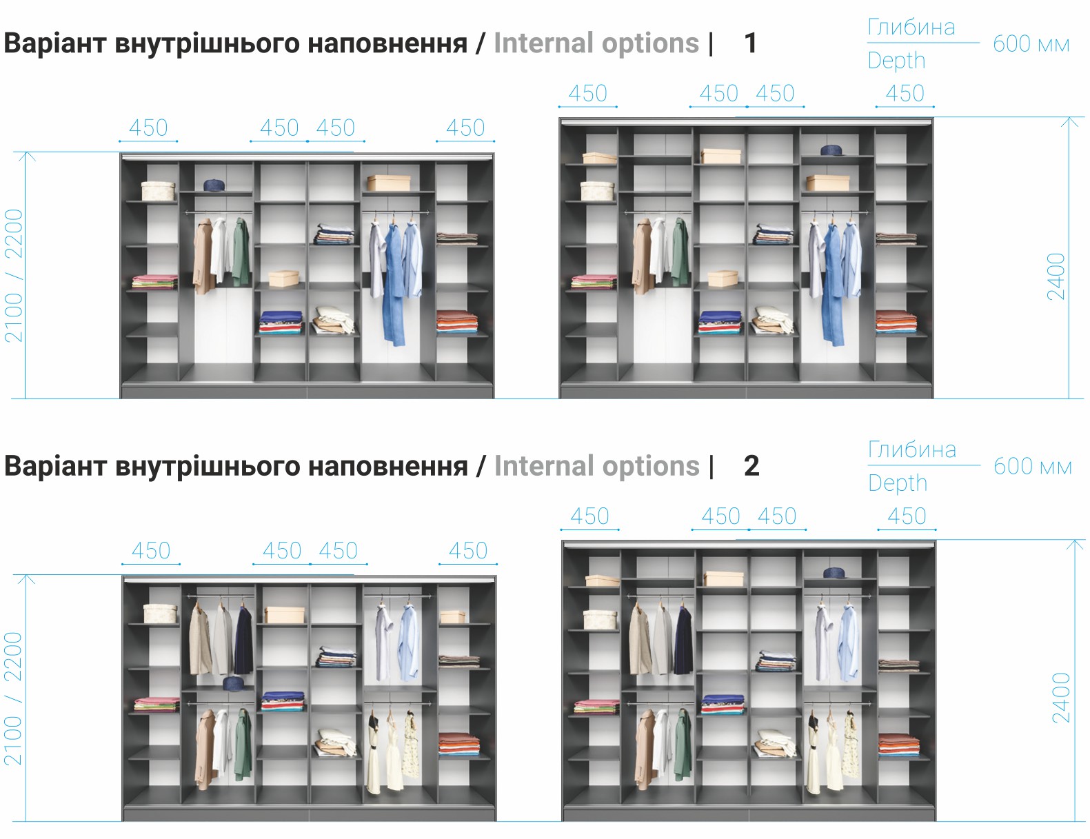 Глибина: 450 мм. / 600 мм.